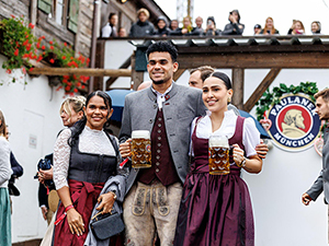 Cầu thủ chạy cánh Luis Diaz và bà xã Gera Ponce đã thu hút sự chú ý tại lễ hội bia Oktoberfest diễn ra ở Munich. |