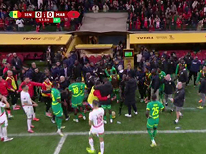 | Cầu thủ Senegal rời sân để phản đối phạt đền | ||