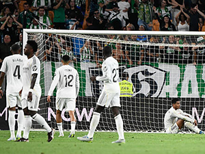 Real Madrid dẫn trước Betis đến phút 90+3 và tưởng chừng đã giành chiến thắng. Tuy nhiên, bàn thua ở phút 90+4 khiến đội bóng Hoàng gia Tây Ban Nha sảy chân đáng tiếc, qua đó tự đẩy mình vào thế cực khó trong cuộc đua vô địch La Liga với Barcelona. |