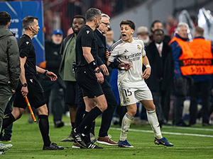 Tiền vệ Arda Güler đã bị phạt thẻ đỏ vì phản ứng dữ dội với trọng tài sau trận Real Madrid thua Bayern Munich ở lượt về vòng tứ kết Champions League.
